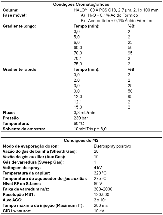 As colunas HALO® 160 Å PCS C18, de fase reversa positivamente carregada, foram projetadas para separações de alta qualidade de peptídeos e proteínas mesmo na presença de agentes fracos, como ácido fórmico, permitindo o desenvolvimento de um único método compatível tanto com HPLC-UV para GC quanto com LC-MS/MS para caracterização detalhada.
