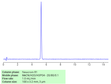 A Aceclidina pode ser analisada por HPLC utilizando a coluna Newcrom R1, da Sielc Technologies, com fase móvel composta por acetonitrila, água e ácido forfórico na proporção 20:80:0,1, respectivamente (Figura 2).